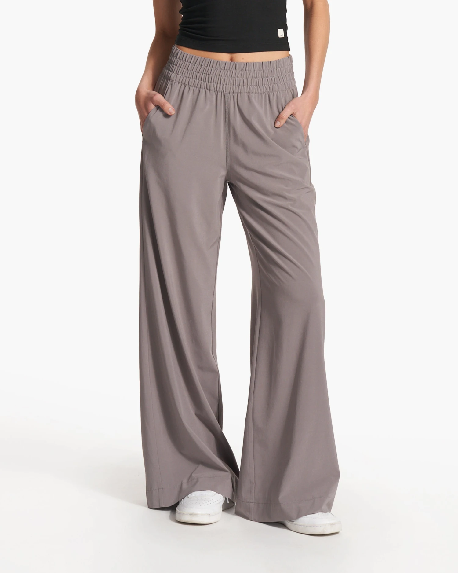 Feel ready to move. The ultra wide-leg pant in our silky soft, partly recycled performance stretch fabric is naturally wrinkle-free and moisture-wicking. With a relaxed fit, soft elastic waistband, and silk-like fabric, the Villa Wideleg is a modern basic that will be your new suitcase staple. This pant is styled long for a breezy look—let the hems sweep the ground or wear it with a heel.